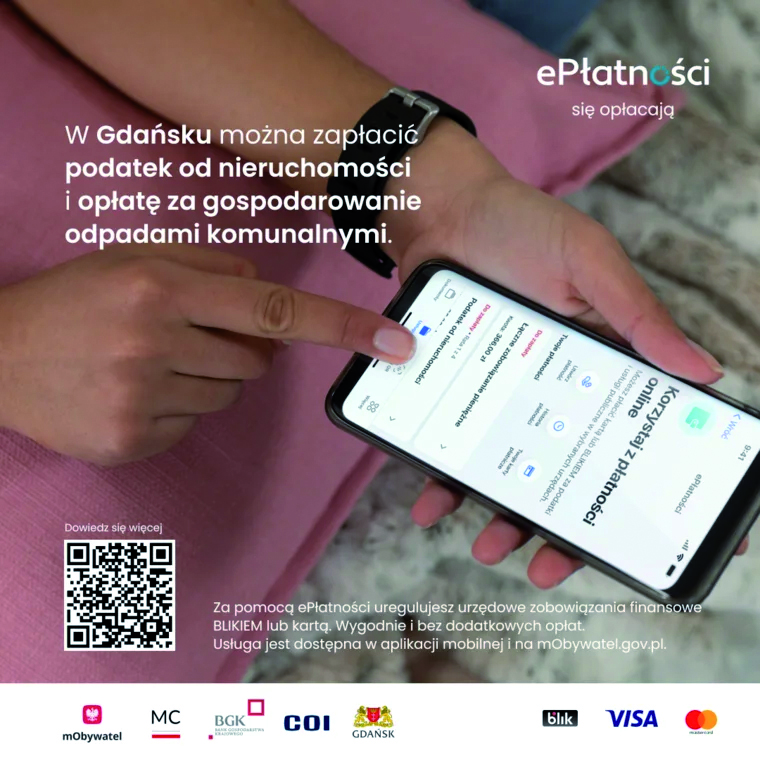 Rozpoczyna się okres doręczania mieszkańcom Gdańska decyzji podatkowych na 2026 rok. To dobry moment, aby przypomnieć o nowoczesnych i wygodnych sposobach regulowania należności wobec miasta. Podatek od nieruchomości oraz opłatę za gospodarowanie odpadami komunalnymi można zapłacić zdalnie – szybko, bezpiecznie i bez dodatkowych opłat – korzystając z usługi ePłatności dostępnej w aplikacji mObywatel.
